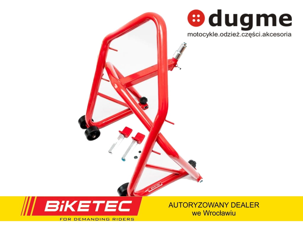 BIKETEC PODNOŚNIK STOJAK MOTOCYKLOWY POD GŁÓWKĘ RAMY + ADAPTERY TYP-L POD TYLNY WAHACZ