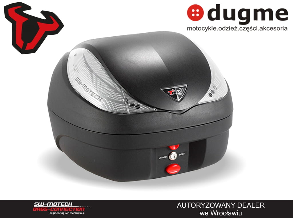 Kufry centralne T-Ray zapewniają dużo miejsca na bagaż w bardzo przystępnej cenie. Zapewniają wodoodporność przewożonemu bagażowi. Dzięki znajdującej się w zestawie płycie montażowej (plastron miodu) bezproblemowo zamontujesz ten kufer na każdym Steel-Rack od SW-Motecha oraz większości bagażników. Elegancka i aerodynamiczna konstrukcja doskonale pasuje do każdego motocykla oraz skutera.