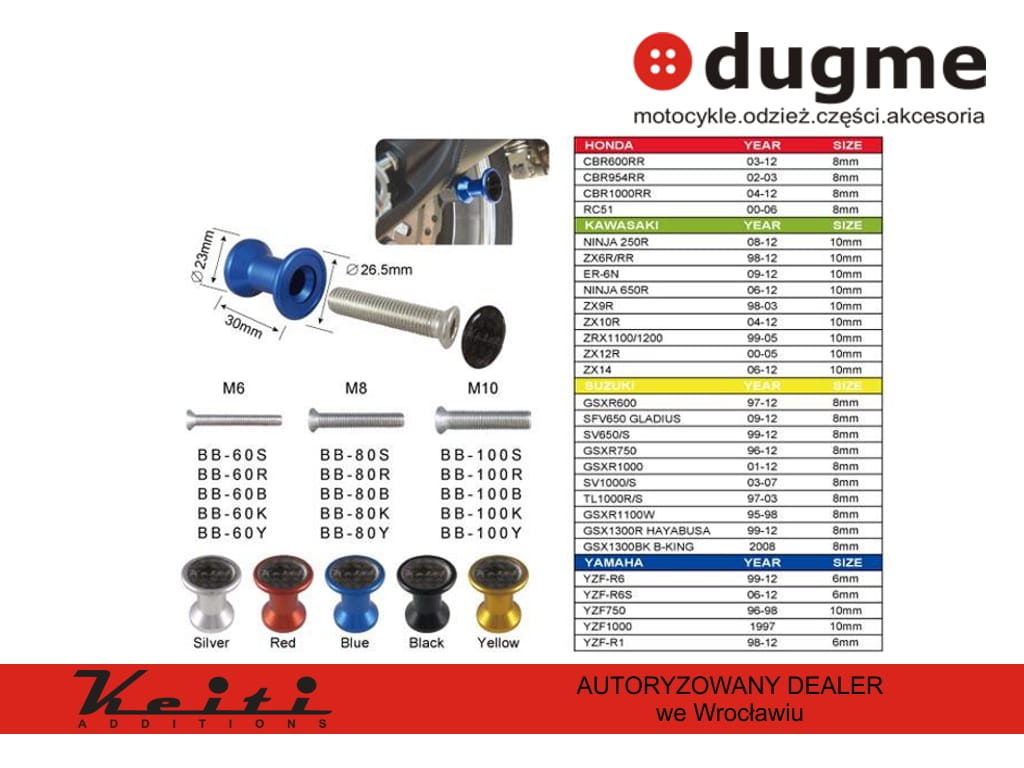 Każda obsługa serwisowa, smarowanie łańcucha czy chociażby zabiegi pielęgnacyjne są znacznie prostsze kiedy motocykl stoi na podnośniku. Większość podnośników pod wahacz wyposażona jest w adaptery które bez rolek w wahaczu są bezużyteczne :-) Dobierz odpowiedni rozmiar / kolor do swojego motocykla.