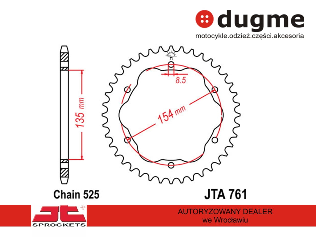 oraz zębatki aluminiowej JTA761,38 (łańcuch 525)