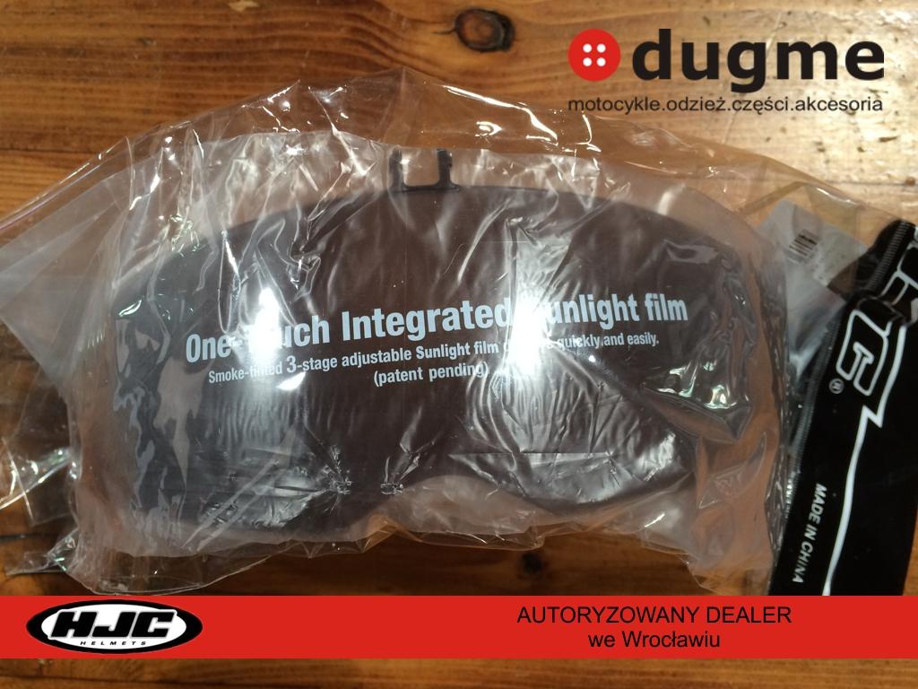 Ciemna szyba wewnętrzna (blenda) z palety szyb HJC, zamiennik fabryczny. Zapewnia lepszy komfort w trakcie jazdy w słoneczne dni, jest fabrycznym elementem kasku. Nie da się tego modelu blendy dołożyć do innego kasku, montowany jest na fabryczną mechanikę podnoszenia/opuszczania w w/w modelach.