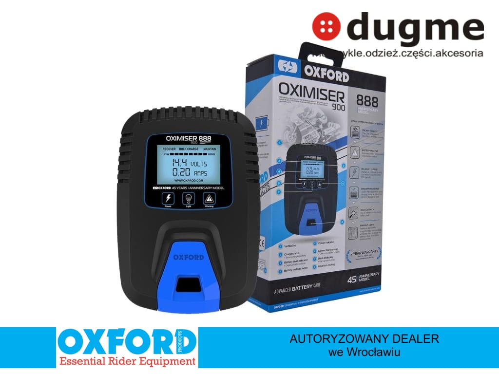 Oxford Oximiser 888 to profesjonalny prostownik do użytku we własnym garażu. Pozwala na naładowanie nawet mocno rozładowanych akumulatorów motocyklowych poprzez dobieranie odpowiedniego natężenia prądu w zależności od jego stanu i poziomu naładowania. świetnie sprawdza się również w funkcji podtrzymania, co pozwala na przezimowanie akumulatora bez obaw o jego utratę żywotności. Ekran informuje nas o: