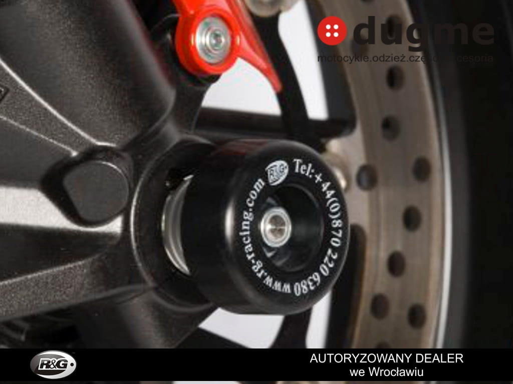 Produkt nowy. Porządnie wykonany z wysokiej klasy syntetycznego polimeru odpornego na silne uderzenia i ścieralnego w razie szlifu, w komplecie tuleja mocująca. Wszystko dedykowane do wyżej wymienionych modeli, przetestowane przez zawodników na torach wyścigowych. Crash fork protector montuje się w przednią oś motocykla, chroniącą przednie zawieszenie koło czy zaciski hamulcowe w razie szlifu. Tuleja przechodzi przez oś motocykla a po obu stronach wystają odbojniki. Obliczone w celu najefektywniejszej ochrony. Zabezpiecz swój motocykl przed wywrotką!