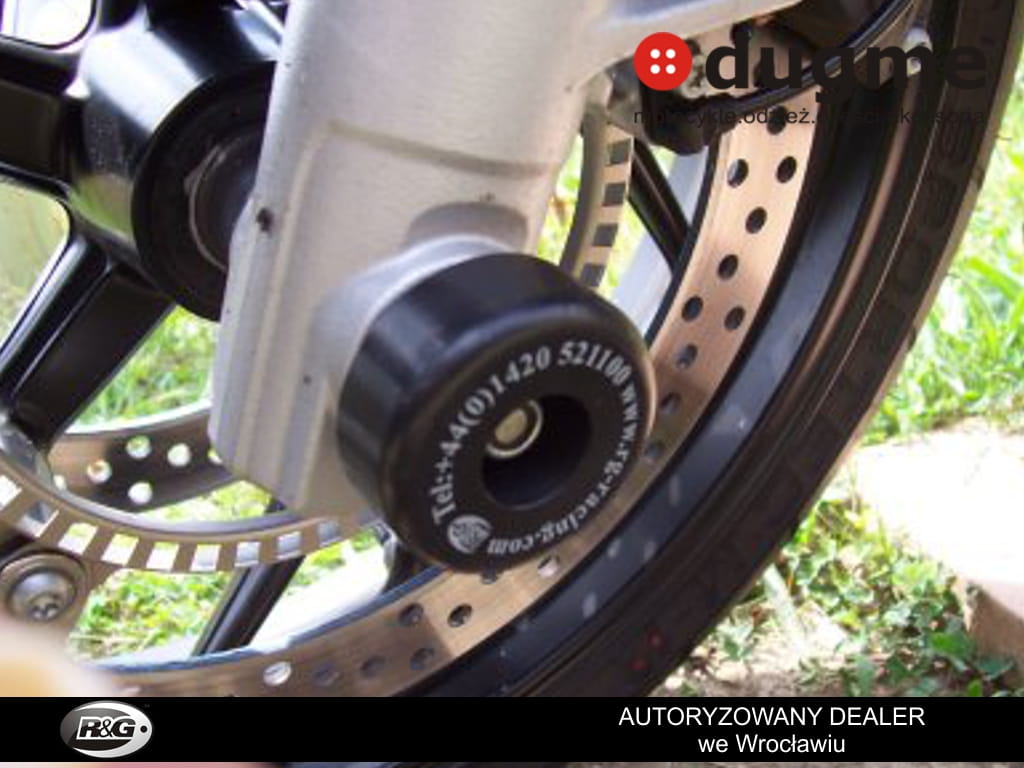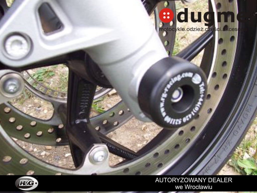Produkt nowy. Porządnie wykonany z wysokiej klasy syntetycznego polimeru odpornego na silne uderzenia i ścieralnego w razie szlifu, w komplecie tuleja mocująca. Wszystko dedykowane do wyżej wymienionych modeli, przetestowane przez zawodników na torach wyścigowych. Crash fork protector montuje się w przednią oś motocykla, chroniącą przednie zawieszenie koło czy zaciski hamulcowe w razie szlifu. Tuleja przechodzi przez oś motocykla a po obu stronach wystają odbojniki. Obliczone w celu najefektywniejszej ochrony. Zabezpiecz swój motocykl przed wywrotką!