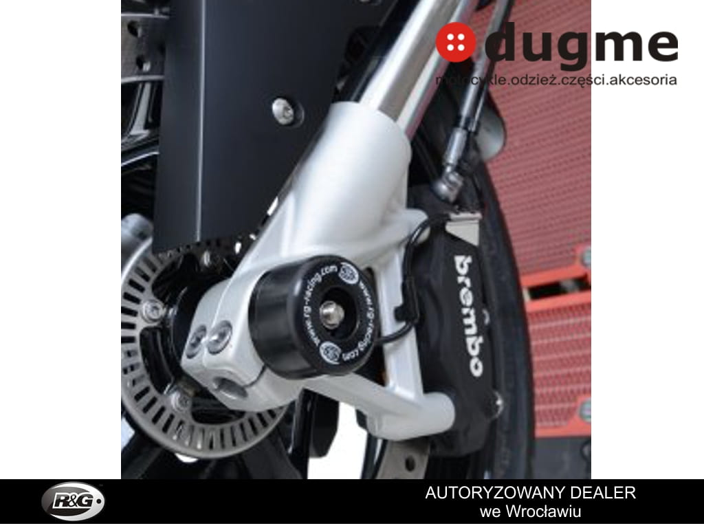 Produkt nowy. Porządnie wykonany z wysokiej klasy syntetycznego polimeru odpornego na silne uderzenia i ścieralnego w razie szlifu, w komplecie tuleja mocująca. Wszystko dedykowane do wyżej wymienionych modeli, przetestowane przez zawodników na torach wyścigowych. Crash fork protector montuje się w przednią oś motocykla, chroniącą przednie zawieszenie koło czy zaciski hamulcowe w razie szlifu. Tuleja przechodzi przez oś motocykla a po obu stronach wystają odbojniki. Obliczone w celu najefektywniejszej ochrony. Zabezpiecz swój motocykl przed wywrotką!