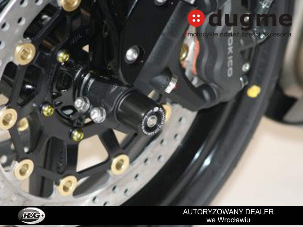 Produkt nowy. Porządnie wykonany z wysokiej klasy syntetycznego polimeru odpornego na silne uderzenia i ścieralnego w razie szlifu, w komplecie tuleja mocująca. Wszystko dedykowane do wyżej wymienionych modeli, przetestowane przez zawodników na torach wyścigowych. Crash fork protector montuje się w przednią oś motocykla, chroniącą przednie zawieszenie koło czy zaciski hamulcowe w razie szlifu. Tuleja przechodzi przez oś motocykla a po obu stronach wystają odbojniki. Obliczone w celu najefektywniejszej ochrony. Zabezpiecz swój motocykl przed wywrotką!