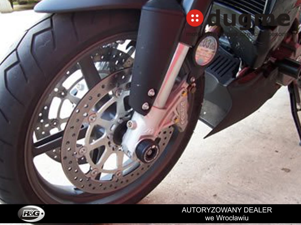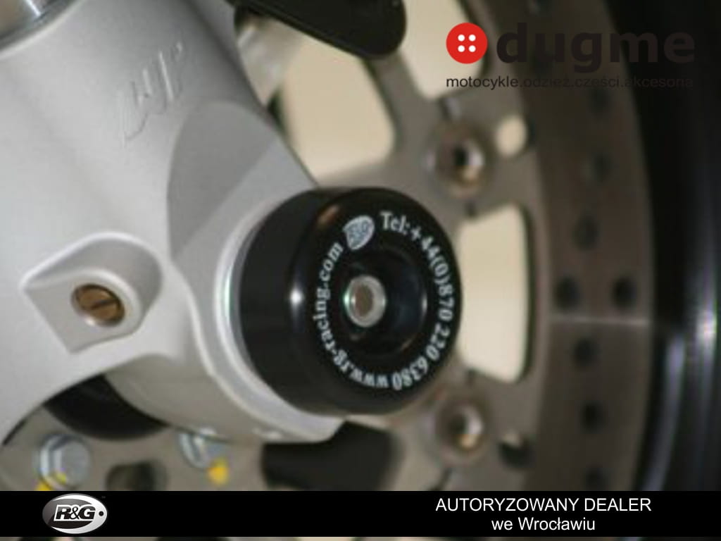 Crash fork protector montuje się w przednią oś motocykla, chroniącą przednie zawieszenie koło czy zaciski hamulcowe w razie szlifu. Tuleja przechodzi przez oś motocykla a po obu stronach wystają odbojniki.
