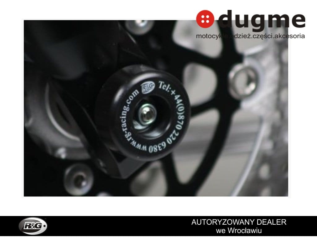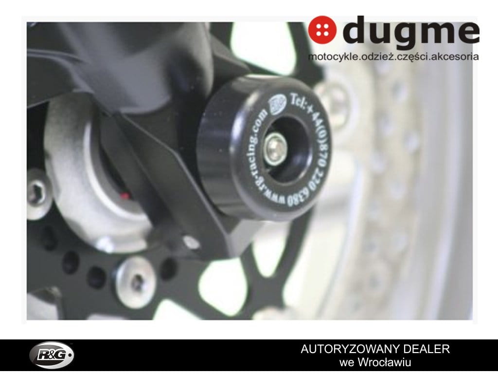 Crash fork protector montuje się w przednią oś motocykla, chroniącą przednie zawieszenie koło czy zaciski hamulcowe w razie szlifu. Tuleja przechodzi przez oś motocykla a po obu stronach wystają odbojniki.