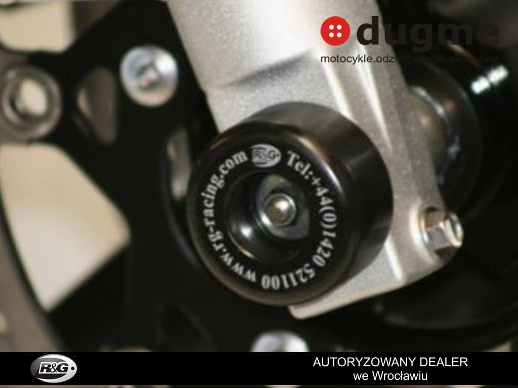 Produkt nowy. Porządnie wykonany z wysokiej klasy syntetycznego polimeru odpornego na silne uderzenia i ścieralnego w razie szlifu, w komplecie tuleja mocująca. Wszystko dedykowane do wyżej wymienionych modeli, przetestowane przez zawodników na torach wyścigowych. Crash fork protector montuje się w przednią oś motocykla, chroniącą przednie zawieszenie koło czy zaciski hamulcowe w razie szlifu. Tuleja przechodzi przez oś motocykla a po obu stronach wystają odbojniki. Obliczone w celu najefektywniejszej ochrony. Zabezpiecz swój motocykl przed wywrotką!