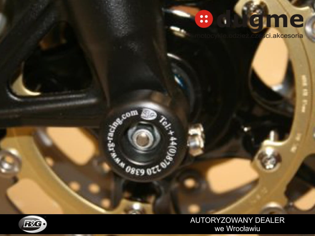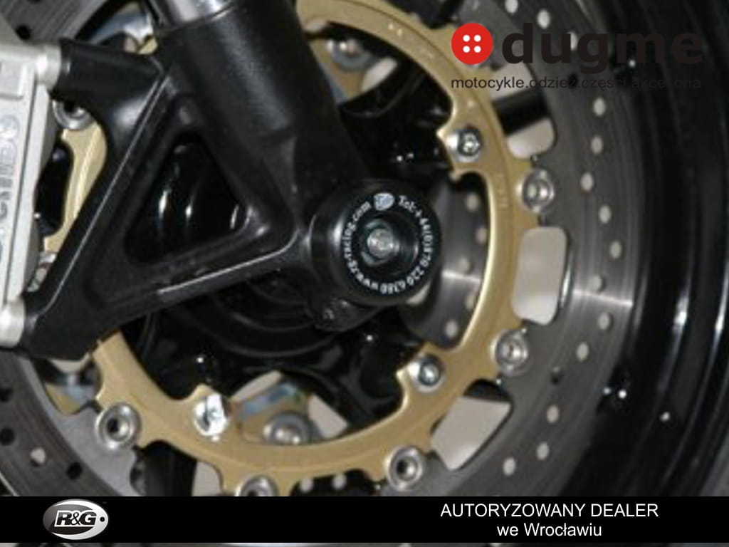 Produkt nowy. Porządnie wykonany z wysokiej klasy syntetycznego polimeru odpornego na silne uderzenia i ścieralnego w razie szlifu, w komplecie tuleja mocująca. Wszystko dedykowane do wyżej wymienionych modeli, przetestowane przez zawodników na torach wyścigowych. Crash fork protector montuje się w przednią oś motocykla, chroniącą przednie zawieszenie koło czy zaciski hamulcowe w razie szlifu. Tuleja przechodzi przez oś motocykla a po obu stronach wystają odbojniki. Obliczone w celu najefektywniejszej ochrony. Zabezpiecz swój motocykl przed wywrotką!