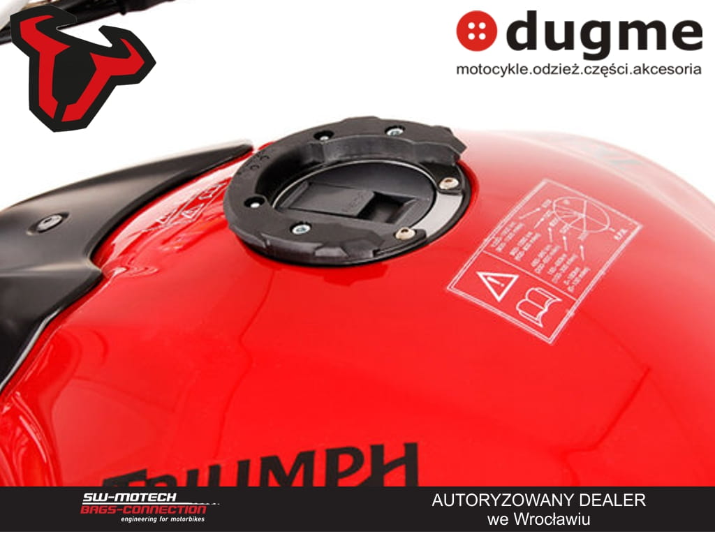 Baza umożliwia łatwy dostęp do wlewu paliwa. Mocny i szybki mechanizm zapięcia gwarantuje bezpieczeństwo torby/tankbaga, którego można zainstalować na mocowaniu QUICK-LOCK EVO. Taki system zapobiega bezpośredniemu stykowi torby z lakierem na zbiorniku.