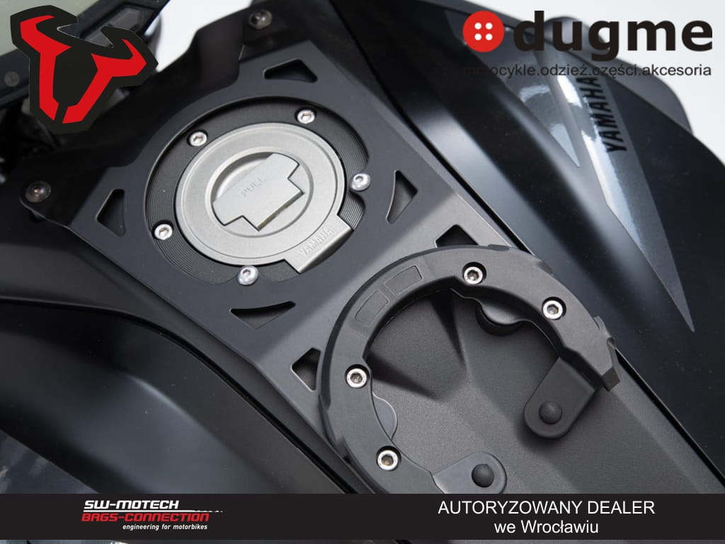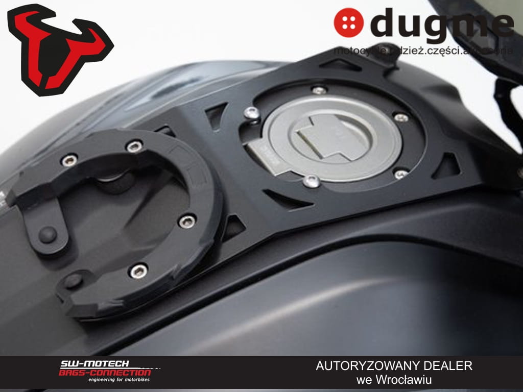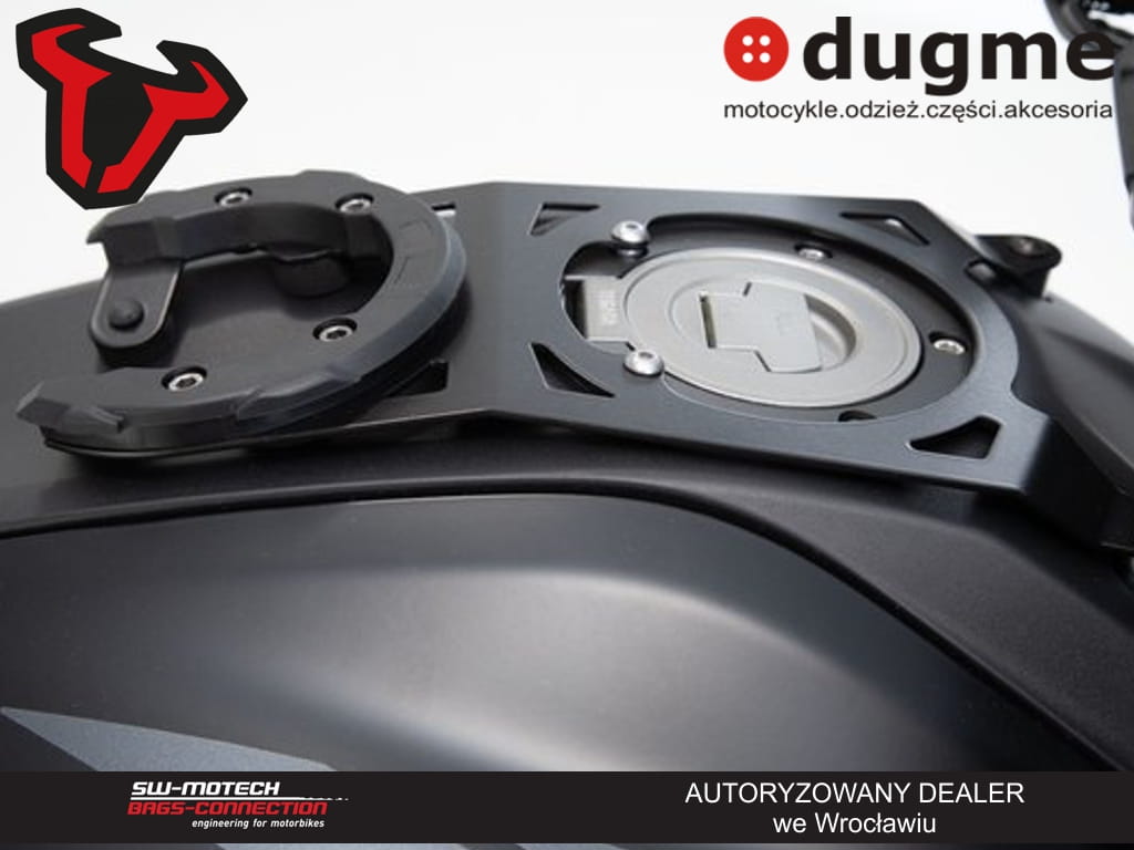 Baza umożliwia łatwy dostęp do wlewu paliwa. Mocny i szybki mechanizm zapięcia gwarantuje bezpieczeństwo torby/tankbaga, którego można zainstalować na mocowaniu QUICK-LOCK EVO. Taki system zapobiega bezpośredniemu stykowi torby z lakierem na zbiorniku.