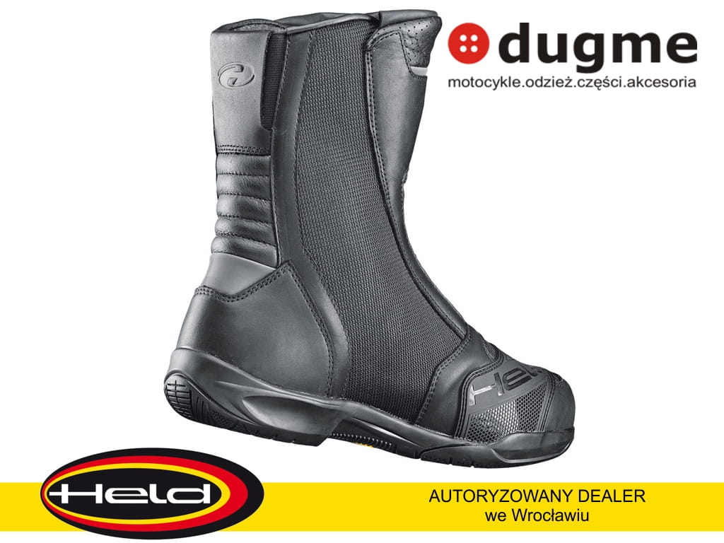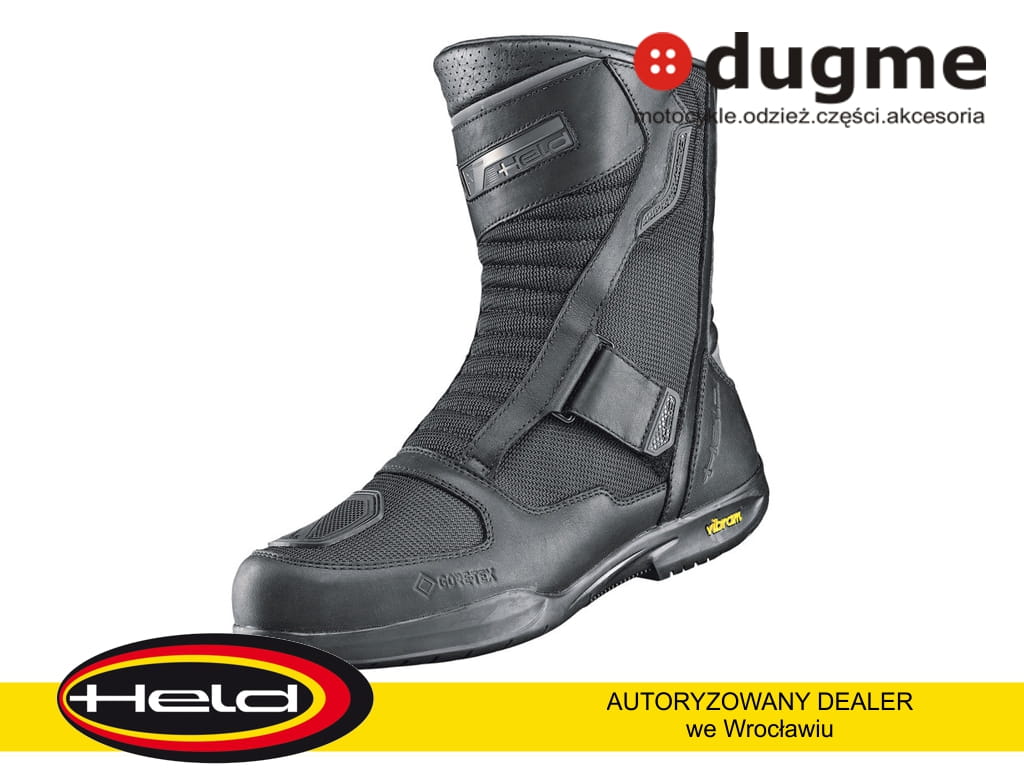 Buty motocyklowe Held Segrino GTX to turystyczny model z najwyższej półki. Skórzano-tekstylne buty wyposażone są w membranę GORE-TEX®, antypoślizgową podeszwę Vibram oraz szereg elementów zabezpieczających nogę w razie upadku.